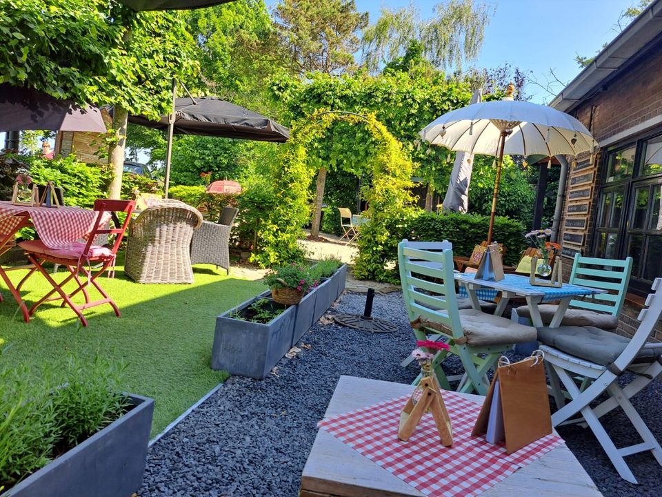 De kleinschaligheid, aandacht voor onze gasten en gerechten maakt deze plek uniek. Je kunt in de theetuin genieten van een lekker kopje koffie of thee met zelf gemaakt gebak of een kleine lunch. Veel komt uit eigen keuken en de ingrediënten worden gehaald bij lokale ondernemers. Naast het plaatsen van uw fiets zijn er ook nog twee parkeerplekken voor auto's.